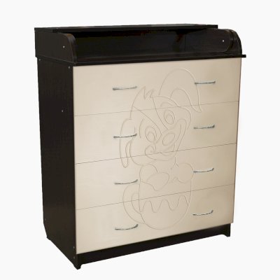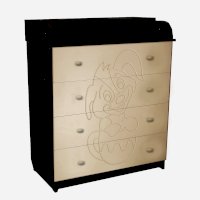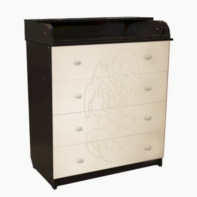Вам понравится привлекательный внешний вид детского комода. На его лицевой части вы увидите углубленный декор в виде Собаки в чашке.