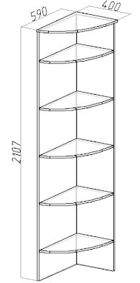 Стеллаж с лекальными полочками гармонично завершит шкафную группу высотой 2107 мм. Из одного комплекта деталей собирается на глубину 400 мм и 590 мм, что делает полку универсальной для любой композиции.