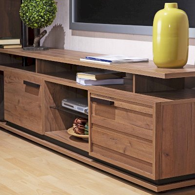 Стильная и аккуратная тумба гармонично впишется в интерьер гостиной в стиле Лофт. Визуально легкая конструкция не загромождает пространство и делает его более функциональным. Динамику Тумбе ТВ задает комбинация открытых поверхностей и глухих фасадов. Откидные фасады на кронштейнах. На ней без труда поместится телевизор с диагональю до 75''. Завершающий стильный элемент тумбы под телевизор - составной контрастный цоколь.