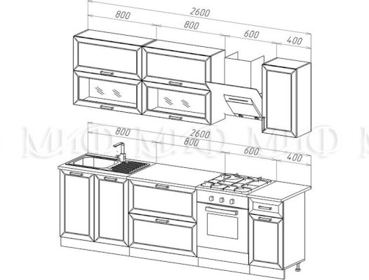 Глубина верхних шкафов: 300 мм