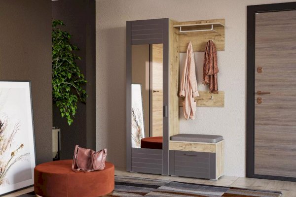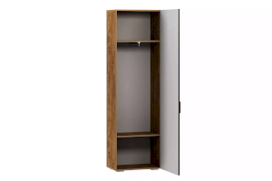 Выдвижная штанга предназначена для размещения одежды на вешалках-плечиках и помогает быстро найти нужную вещь. В шкафу также находятся и две широкие полки. Антресольная полка лучше всего подходит для хранения сезонной одежды, а нижняя – для размещения коробок с обувью.
