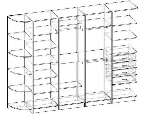 Вы можете выбрать любой цвет корпуса из представленных ниже вариантов цветов ЛДСП.Также вы можете собрать cами свою гардеробную Alex