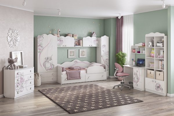 Стильный и модный шкаф детской «Фэнтези» - обрадует каждого ребенка. По Вашему желанию в шкафу можно установить штангу или еще две дополнительные  полки. Необычный принтерный рисунок на фасадах выдержан в общем стилистическом решении. Рисунок устойчив к истиранию и ультрафиолету.
